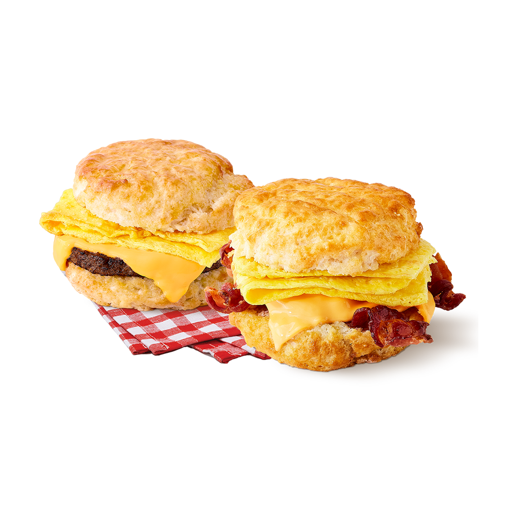 Don’t worry, we won’t tell Nana you like our biscuits more. For just $5.99, get two Official Biscuits of the South filled with your choice of sausage egg & cheese or bacon egg & cheese.