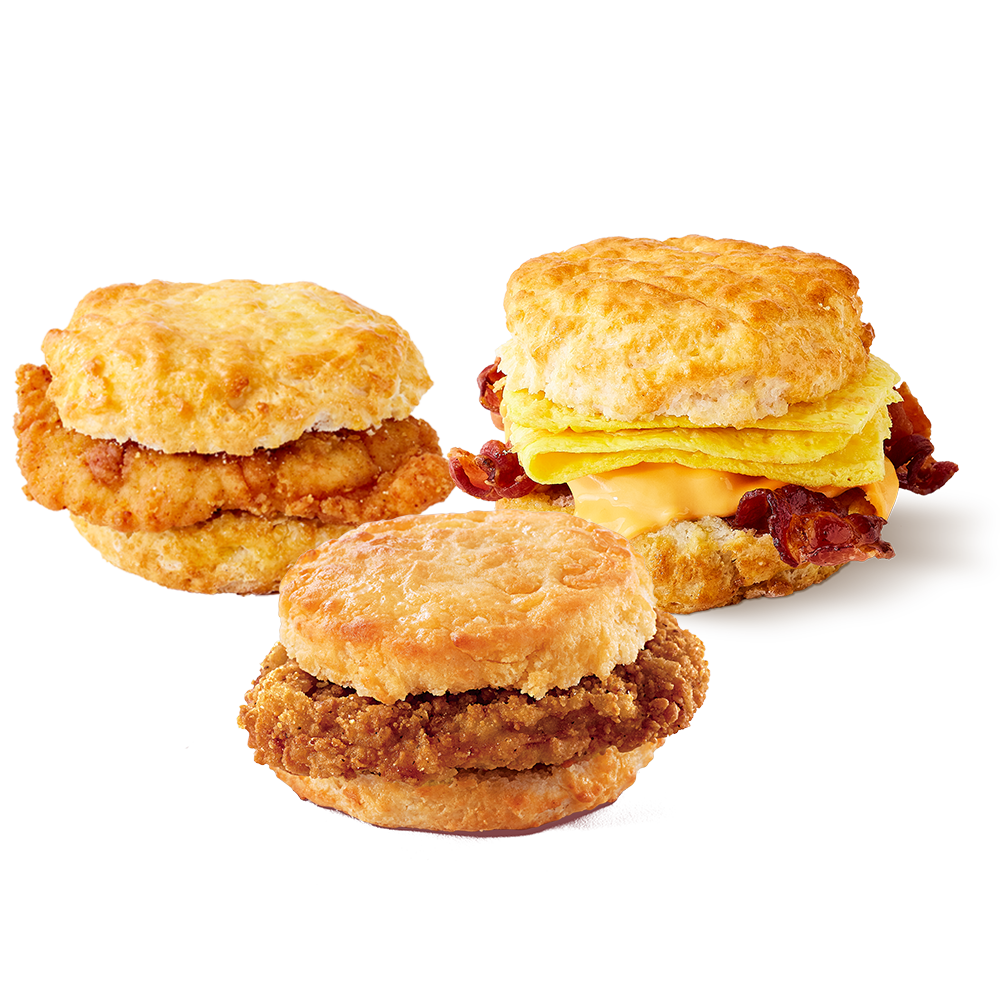 Get your choice of 2 biscuits for just $4.99. Choose from a handbreaded chicken biscuit, southern fried pork chop biscuit, or a sausage, egg, and cheese biscuit. Decisions, decisions.