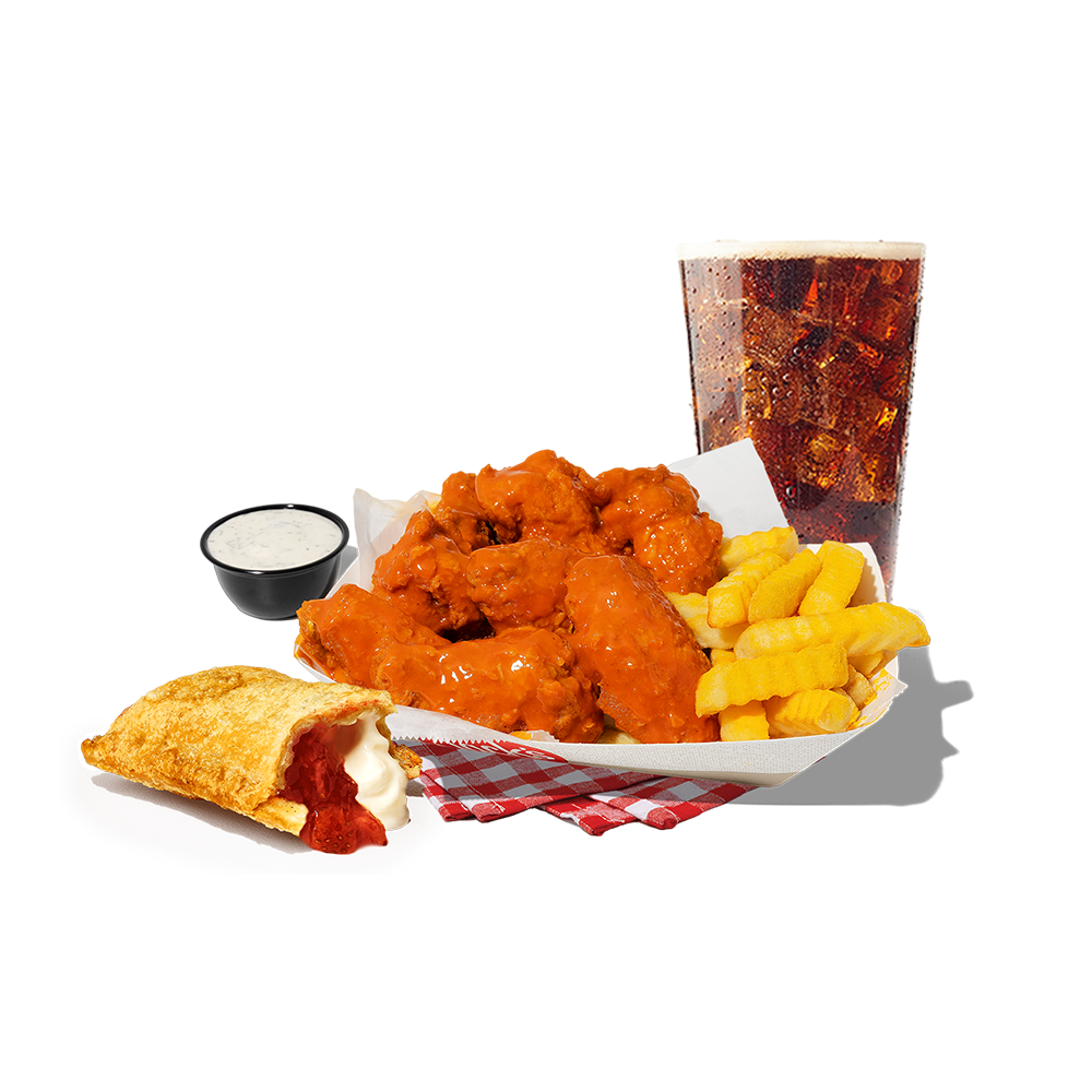 What’s better than hand-breaded, golden fried chicken wings? Hand-breaded, golden fried chicken wings, fries, a drink, and a pie. Get ‘em plain, with Buffalo, BBQ, or Sweet & Spicy (the wings, not the pie…).